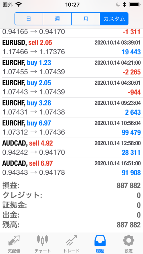 FXコピートレード【2020年10月12日~10月16日】+88万7,882円の不労所得